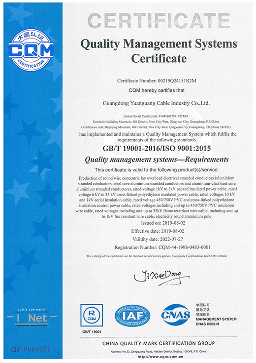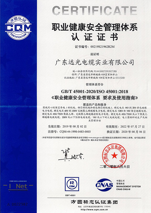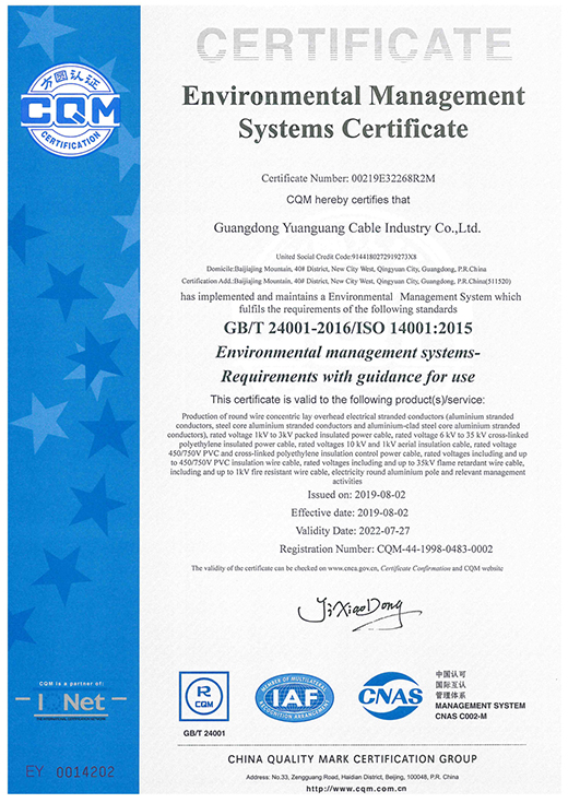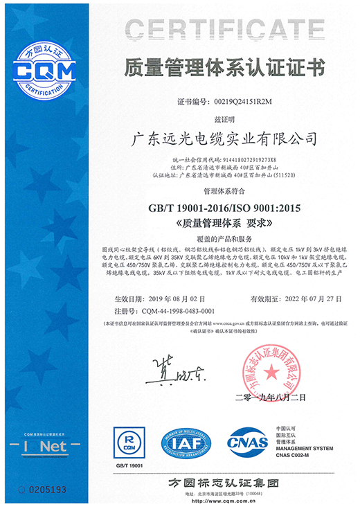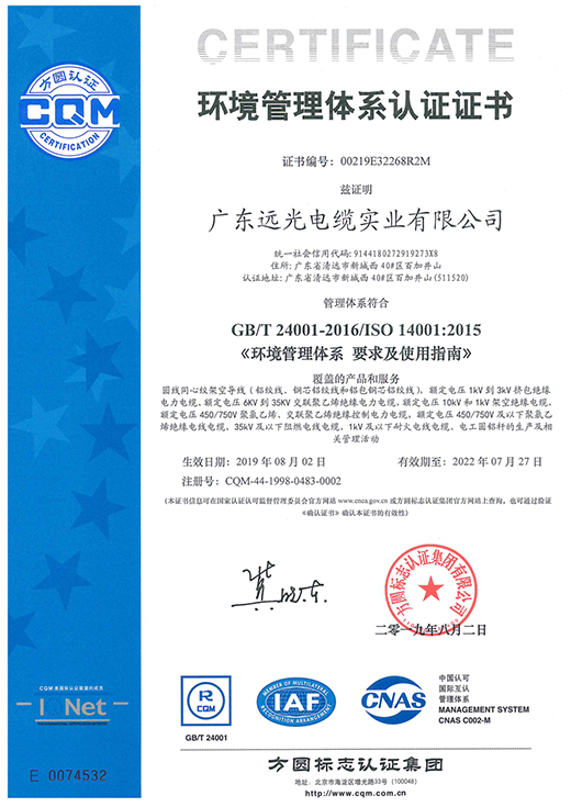 广东远光电缆实业有限公司于2001年通过了ISO9001:2000质量体系认证,产品质量得到不断的持续改进。随着国家经济与市场的规范化管理,2009年以来,南方电网等国内重点电线电缆用户对投标方提出了GB/T24001《环境管理体系要求》和GB/T28001《职业健康安全管理体系规范》的认证要求,并将其纳入了评标的重要考核指标。为了保持和扩大企业在市场中的强大竞争力,远光公司为ISO9001年度复审、GB/T24001认证和GB/T28001认证工作制定了“三位一体认证工作实施计划”,组织编写了《广东远光电缆实业有限公司质量、环境、职业健康安全管理体系手册》及对应的程序文件,并逐项落实落细文件要求的具体工作。通过全员的共同努力及现场审核,广东远光电缆实业有限公司每年都顺利通过专家团的“质量、环境、职业健康安全管理体系”三位一体认证,大大增强了招标方对光牌产品的信心,同时也标志着远光电缆的管理迈向了更高的水平。