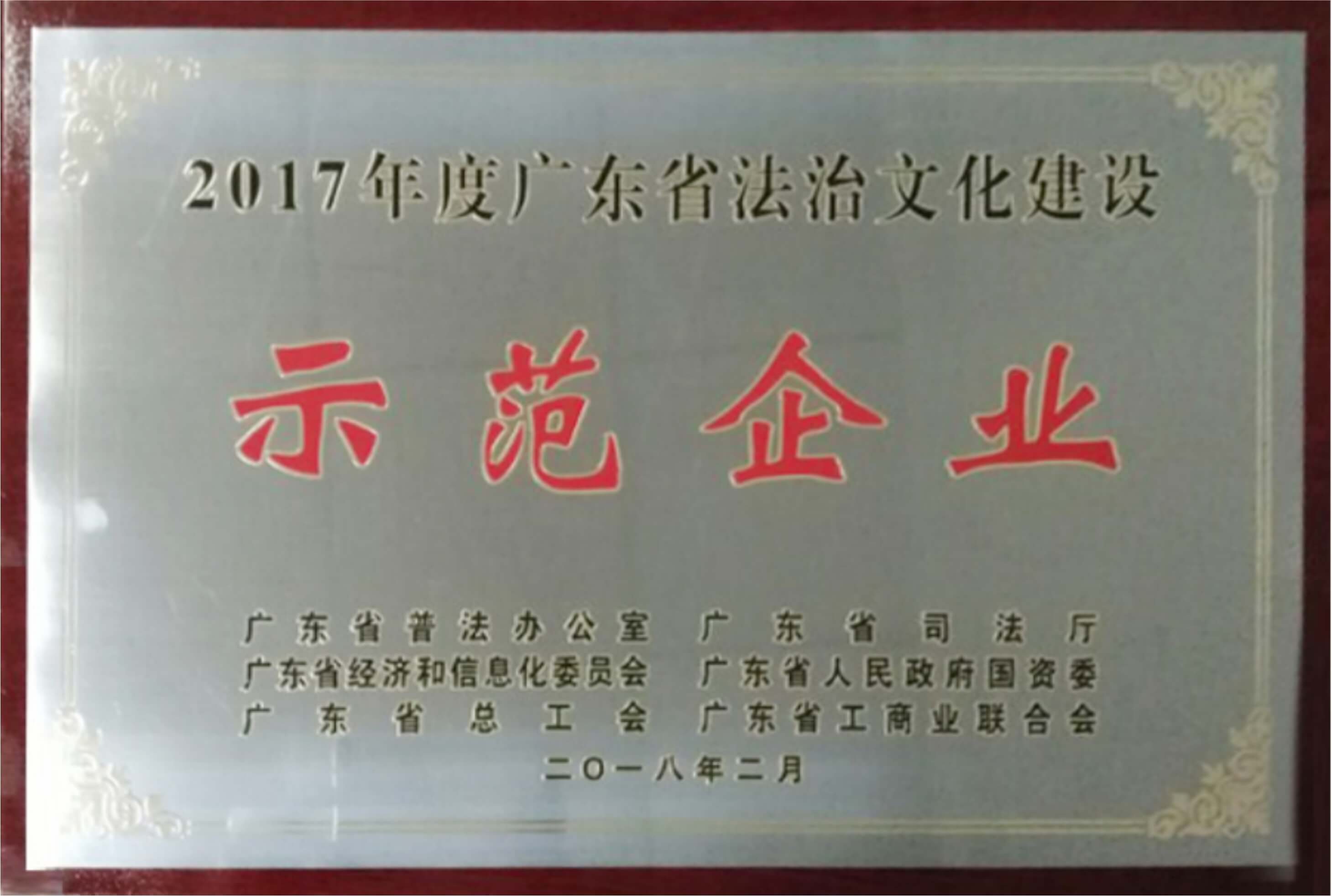 公司是广东省人大常委会基层立法联络单位,广东省法治文化建设示范企业。