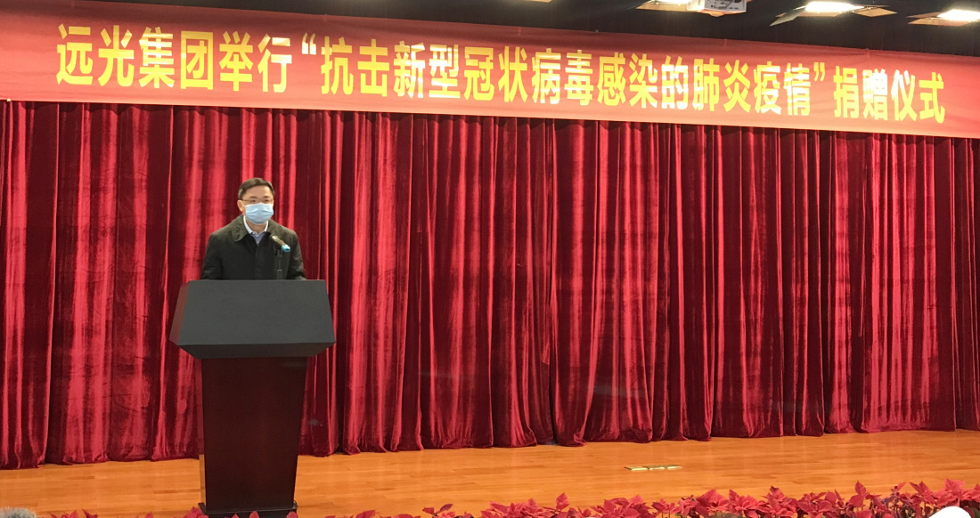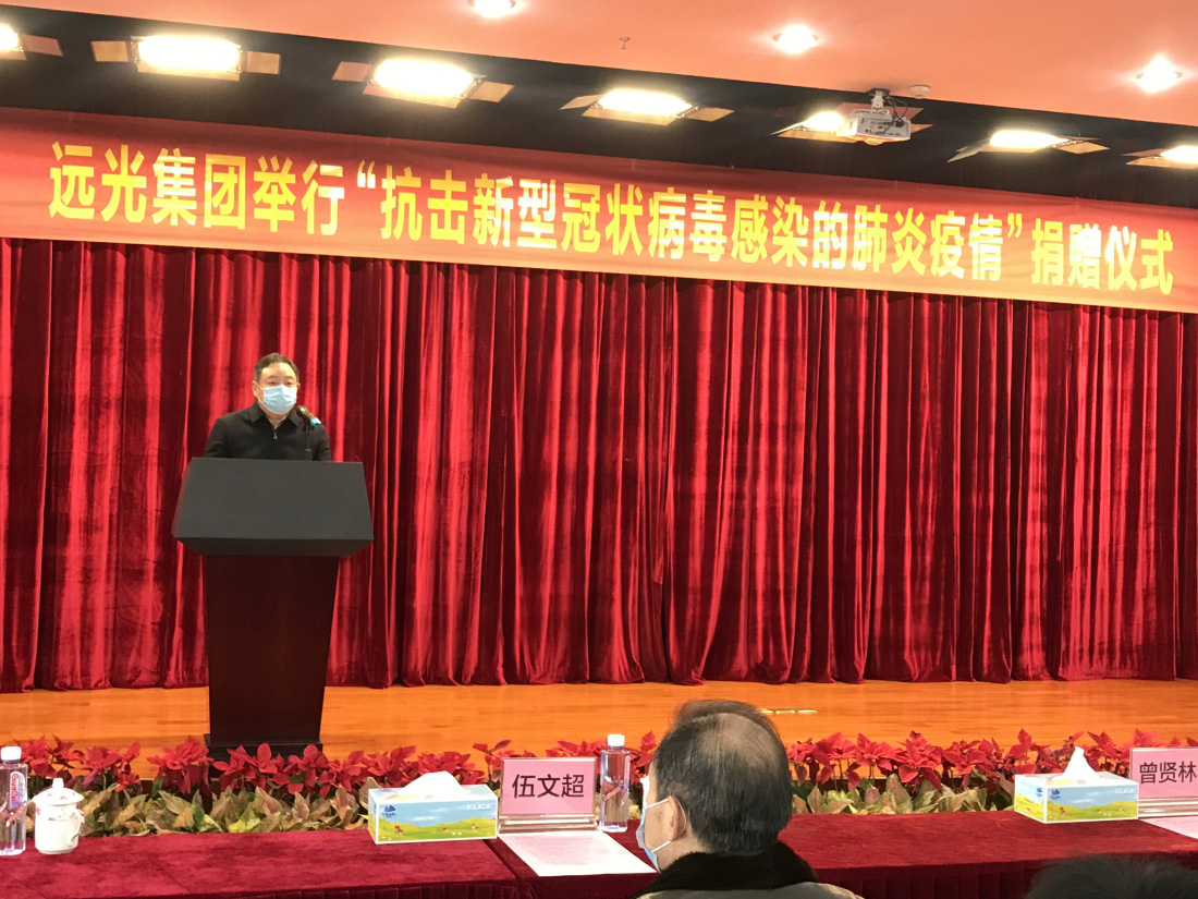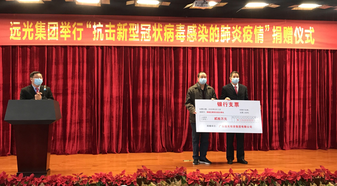 十三届全国人大代表、清远市中小企业协会会长、远光集团董事长蔡仲光致辞时首先对疫情发生以来,英勇奋战在抗疫最前线,为保护人民生命健康作出了重大贡献的广大医务工作者致以了最崇高的敬意和感谢!并表示:在疫情防控的关键阶段,前期远光集团虽已带头并发动协会会员单位通过多渠道向社会捐款捐物累计达150多万元,但做的还不够多,还应该主动担起更多的社会责任,所以再次主动捐赠100万元作为抗击新冠肺炎疫情防控专款使用(注:50万捐赠湖北省随州市作为疫情防控专款,50万捐赠清远本地作为疫情防控专款)。蔡仲光希望能为湖北和清远人民群众的生命安全尽绵薄之力,希望大家齐心协力早日战胜疫情。