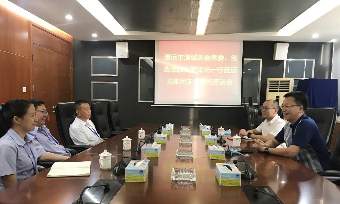 9月25日下午,清远市清城区委常委、统战部部长罗泽光莅临远光公司慰问高层次人才——远光集团技术中心顾问蒋陆肆、远光电缆技术总监刘冠、远光电缆技术副经理许莉莉,并在远光大厦七楼会议室召开了座谈会,远光党支部书记、人力资源中心副总经理李壮烈参加了座谈。