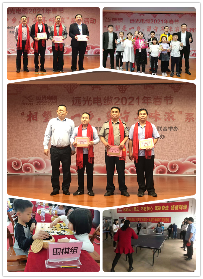 活动于2月8日下午13:30拉开帷幕,首先在远光员工活动室、远光大厦会议中心同时开展乒乓球男子组、乒乓球女子组、象棋、亲子围棋等体育比赛,共有来自江西、湖南、四川、广西、湖北、福建、河南等50多名外省籍员工及其家属参加了比赛。经过激烈地角逐,四川籍李壮烈、广西籍黎继斌、黄光尧、湖南籍周亮、杨志慧、江西籍龙文仙等分别斩获各奖项,清城区总工会副主席胡华芸、远光集团代理董事赖振华等领导进行了颁奖。