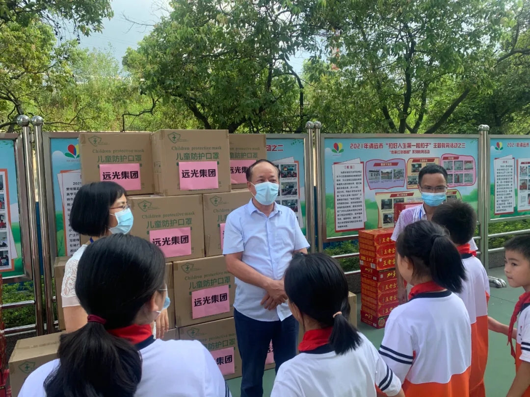 昨日下午,烈日当空,在得知清城区横荷街办将组织医务人员对百加小学进行大规模核酸筛查后,蔡仲光代表组织远光集团总裁蔡凯俊以及清城区人大代表、远光集团总裁助理钟伟健在短短两小时内筹集物资亲临现场慰问,在横荷街办人大工委主任阮丽英的陪同下,为现场医务人员和工作人员送上50箱(共1200支)清凉饮料,为百加小学全体学生送上近5万个(价值近3万元)医用儿童口罩。