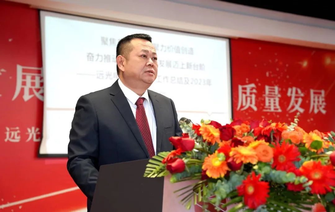 蔡仲光董事长先是分享了党的二十大和中央经济工作会议的学习体悟,感恩党和国家对实体经济,特别是制造业的支持。过去三年受疫情影响,很多企业生存困难,因为每一位远光同仁的坚守和付出才有了远光的今天。在我国加快建设“制造强国”的背景下, 广东也将制造业提升到前所未有的高度,提出“制造业当家”,他从以下四个方面指出新的一年集团发展方向: