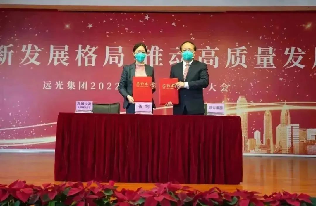 ▲远光雅阁酒店总经理李纯清代表远光雅阁酒店签订责任书