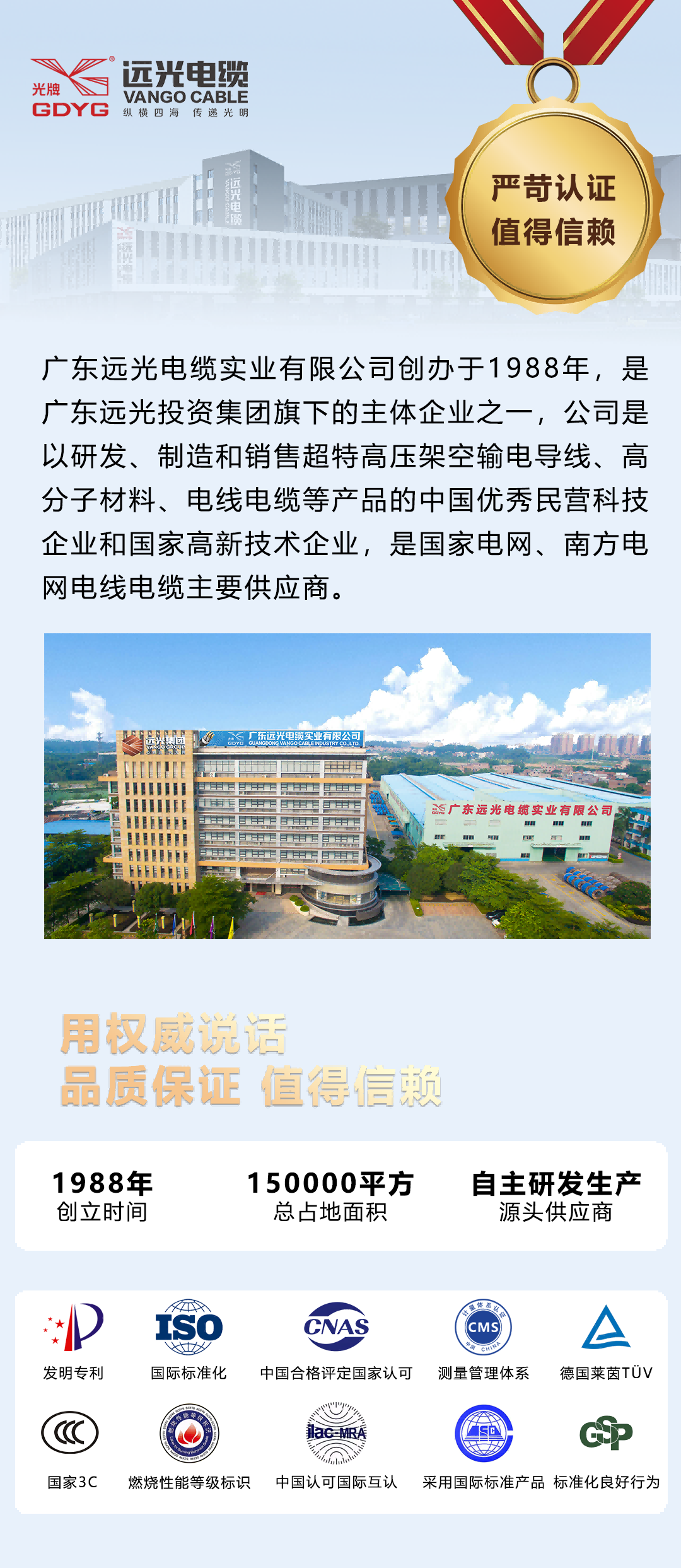 2024年6月27日,广东远光电缆实业有限公司生产的“额定电压450/750V及以下交联聚烯烃绝缘无护套低烟无卤阻燃电线电缆”获颁“湾区认证”证书,成为清远市首批获得“湾区认证”的企业,为清远市制造业开拓粤港澳大湾区市场增添强大动力。