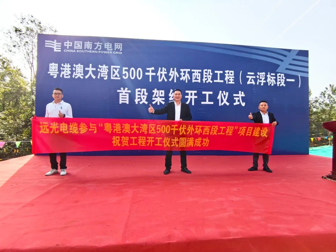 2023年3月1日,远光电缆参与了“粤港澳大湾区500千伏外环西段工程”项目建设(云浮标段一)首段架线的开工仪式。