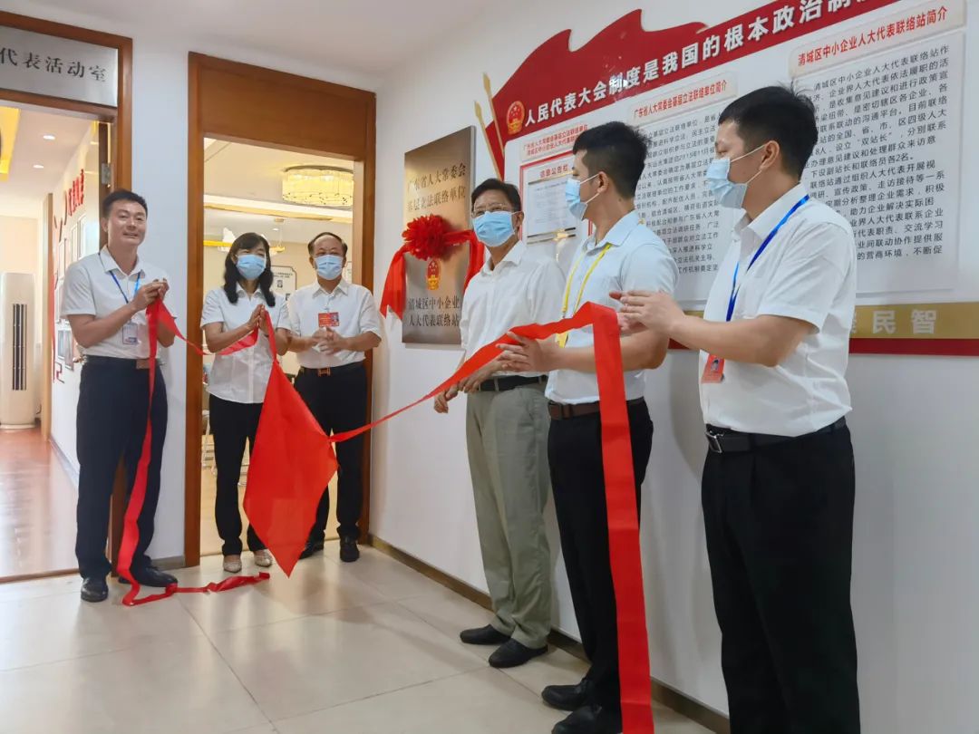 7月25日,位于远光集团远光大厦三楼的清城区中小企业人大代表联络站(以下简称“联络站”)举行揭牌仪式。区人大常委会党委副书记、副主任沈学贤,党组成员、副主任罗婉玲,横荷街道人大工委主任唐孝帆,全国人大代表、远光集团董事长蔡仲光,市人大代表、远光集团总裁蔡凯俊,以及省、市、区各级进站人大代表共20人参加了揭牌仪式。