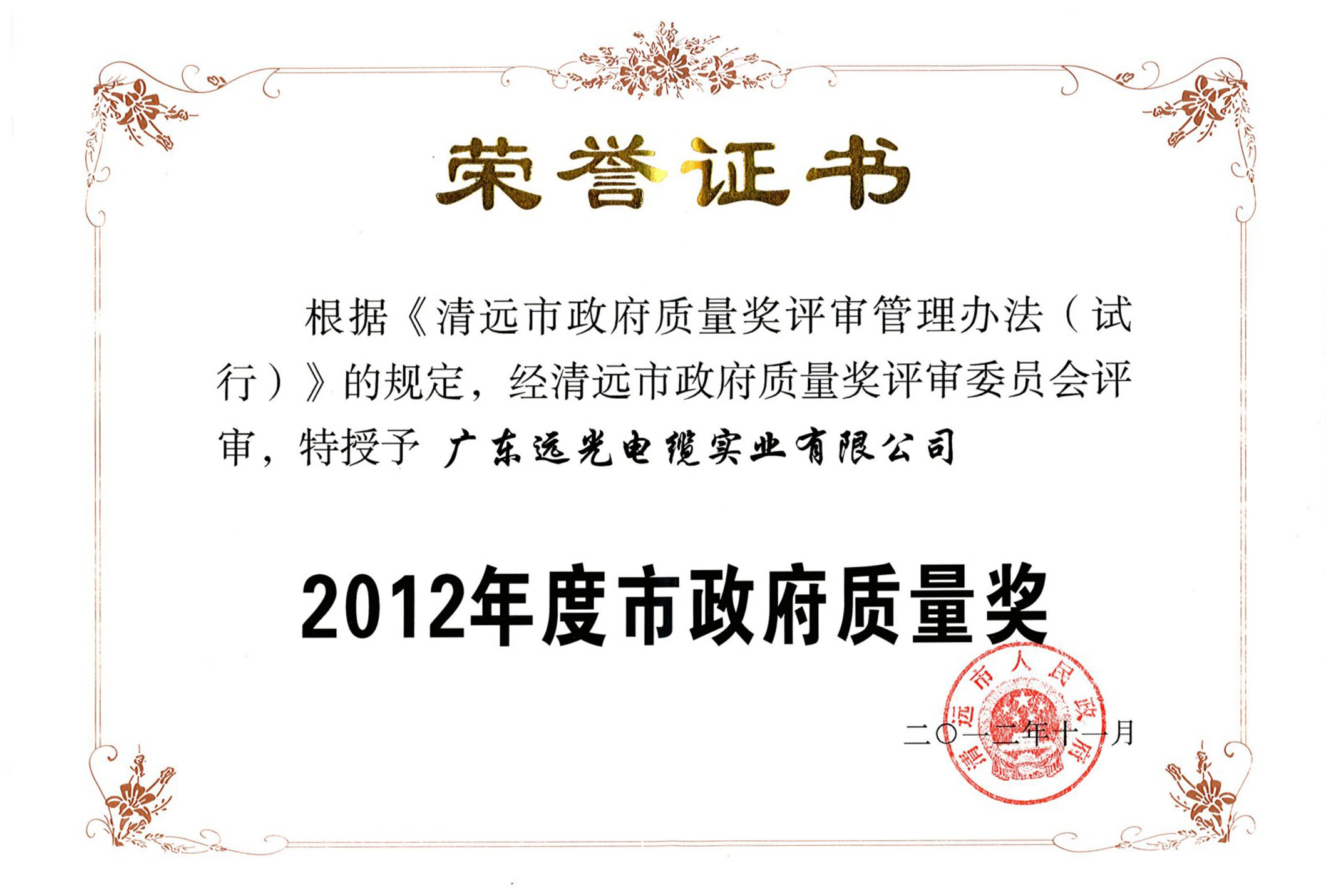 清远市质量奖