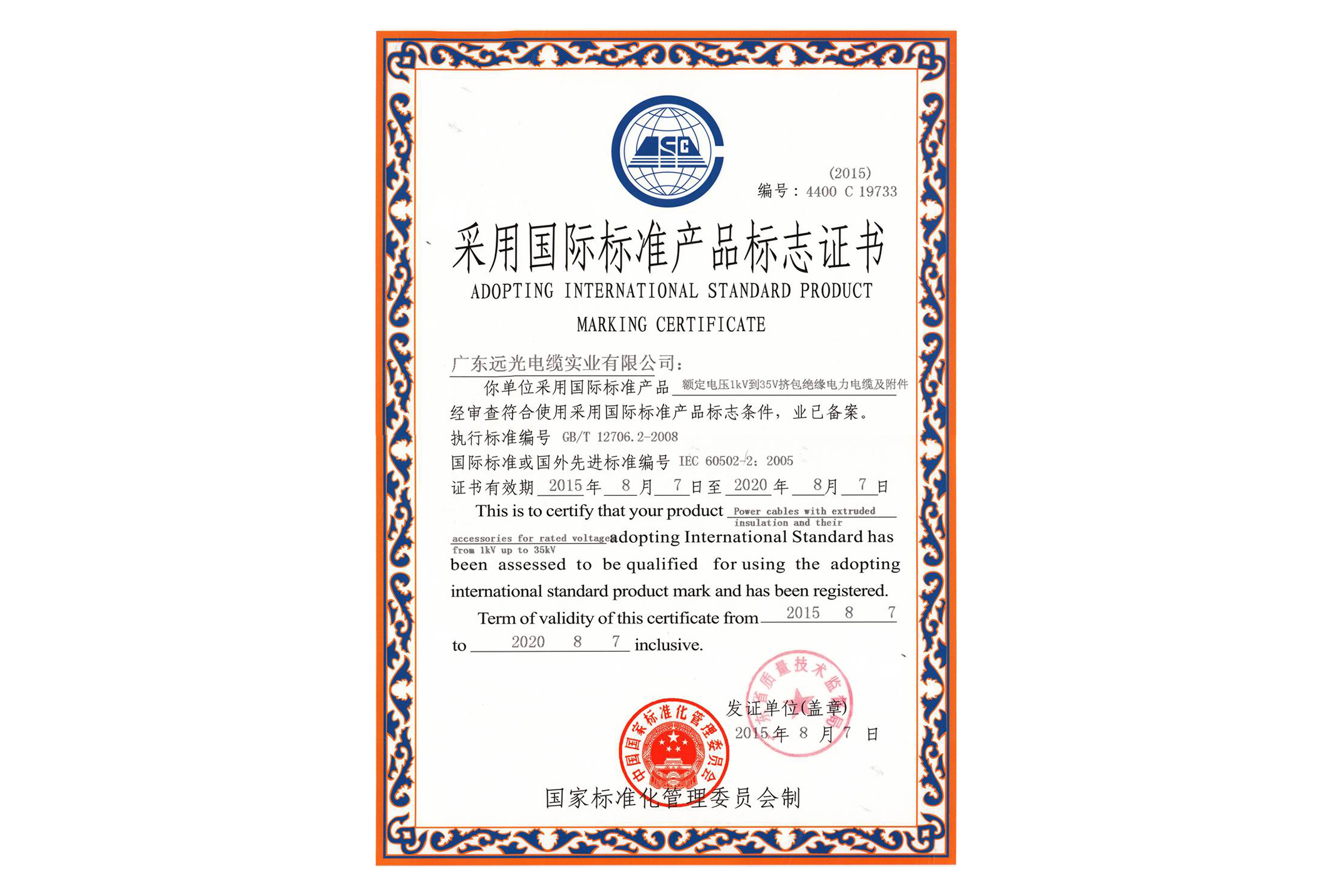 采标证书-额定电压1kV到35kV挤包绝缘电力电缆