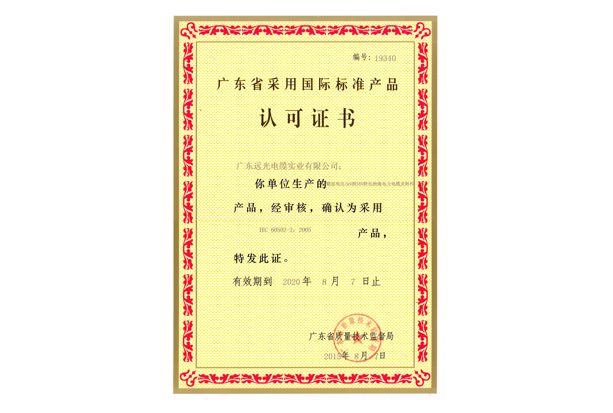 采标认可证书-额定电压450V/750V及以下聚氯乙烯绝缘电缆