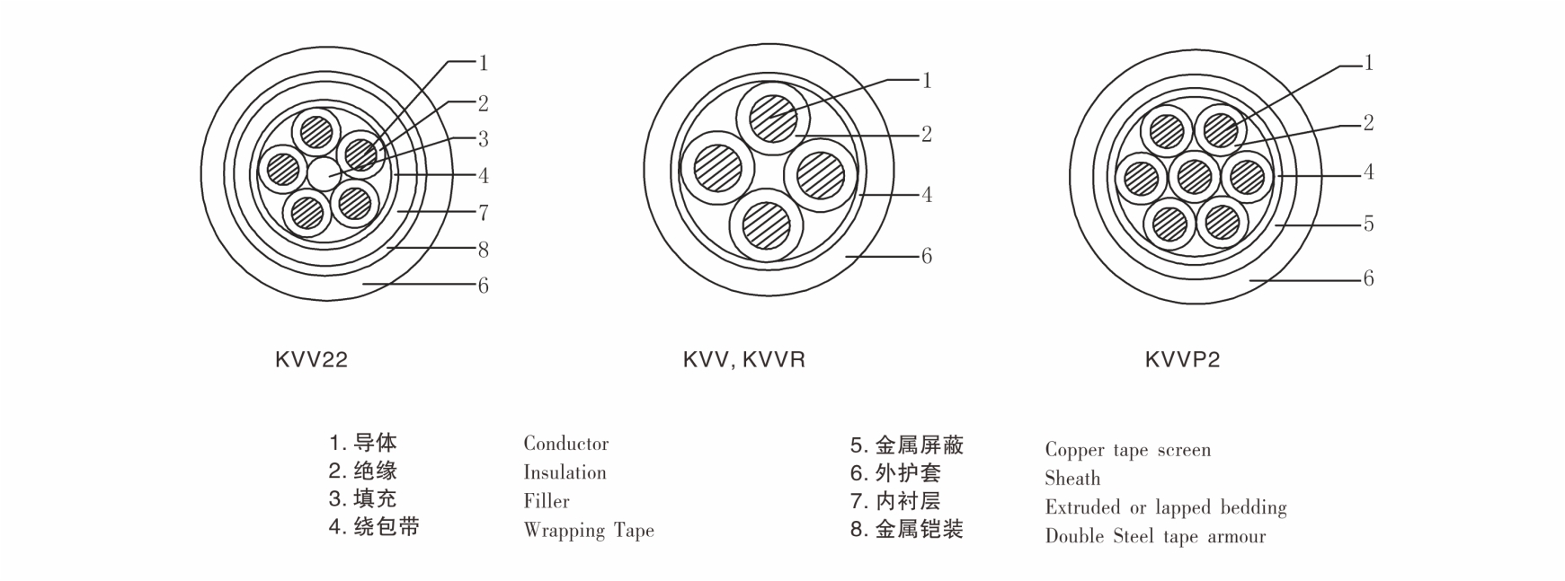 型号:KVV、KVVP、KVVP2、KVV22、KVVP2-22、KYJV、KYJVP、KYJY等